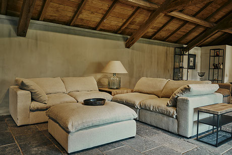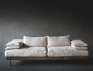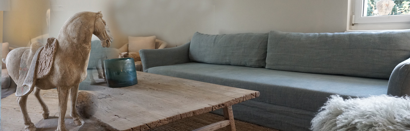 Unsere Polstermöbel werden mit Hussen aus hochwertigem Leinen aus Italien oder Belgien gefertigt. Die Bezüge sind abnehmbar und können jederzeit gereinigt werden. In unseren Onlineshop finden Sie eine große Auswahl an Beispielmöbeln mit Preisen und Maßen.